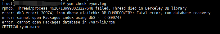 重新运行yum check > ./yum.log
